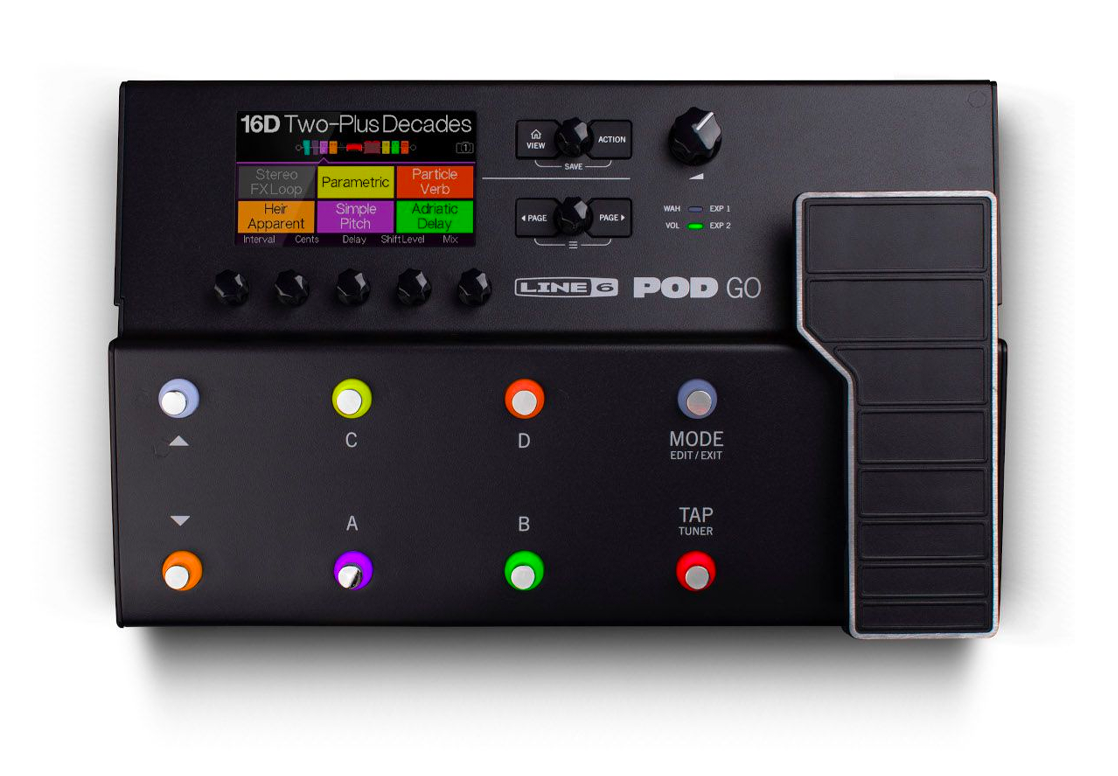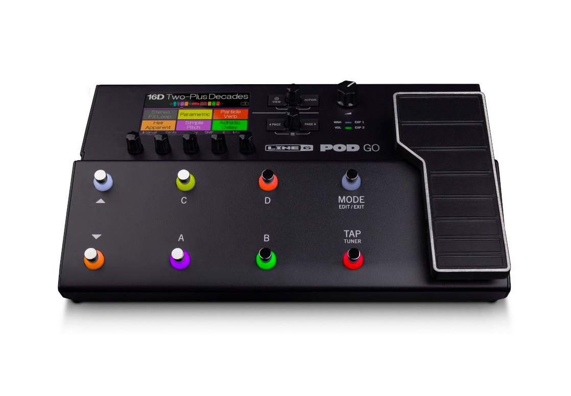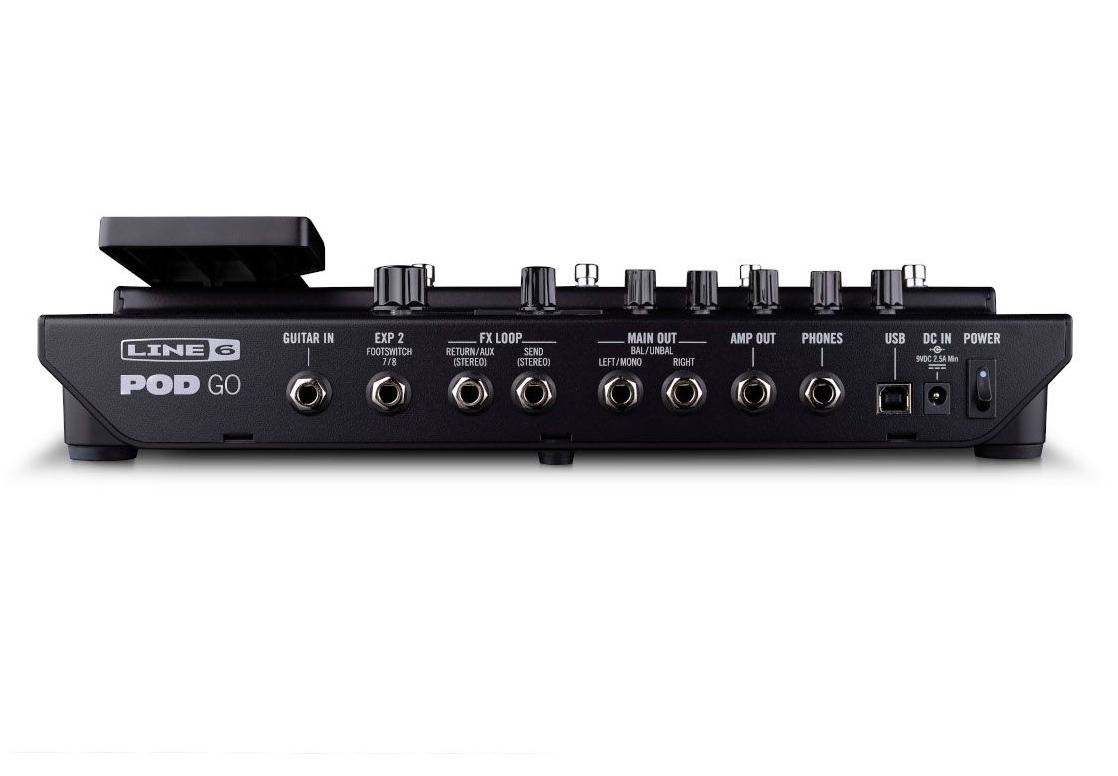 POD Go enables a simple and intuitive workflow. Choose, edit, and control sounds using the large color LCD screen, five push encoders, eight rugged footswitches, and cast-aluminum multi-function expression pedal—and add two external footswitches or a second expression pedal for even more real-time control. All the essential audio connections are at your fingertips, too, including balanced stereo outputs, a duplicate amp out that can be tapped before the Cab/IR, a stereo effects loop, a headphone jack, and even a USB port for accessing the 4-in/4-out audio interface with re-amping.