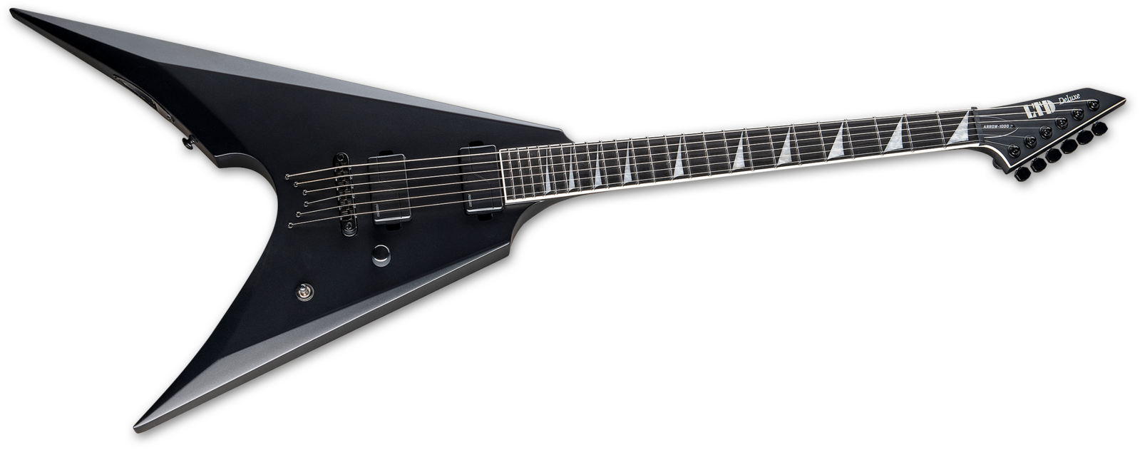 Guitars in the LTD 1000 Series are designed to offer the tone, feel, looks, and quality that working professional musicians need in an instrument. The Arrow-1000NT stands for “non-tremolo”, delivering this bold and angular guitar shape with a recessed TonePros TOM bridge and string-thru-body design. It offers a neck-thru-body design with mahogany body, 3-piece maple neck, reverse headstock, and Macassar ebony fingerboard with triangular white pearloid inlays. Designed to provide the tones for modern rock and metal, the Arrow-1000NT features a set of direct-mount Fishman Fluence Modern Humbucker active pickups (alnico in the neck and ceramic in the bridge), with push-pull control to select voicings. These pickups offer an outstanding variety of huge tones that range from aggressive and punchy to smooth and articulate. The Arrow-1000NT also includes stainless steel frets and precise Grover tuners.