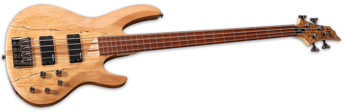 With its unique coloration and grain pattern highlights, spalted maple is a great look for a bass that stands out from the crowd. The B-204SM FL is an excellent choice in an affordable fretless bass that includes an ash body with a spalted maple top in Natural Satin finish, along with a thin U-shaped 5-piece maple/jatoba neck for excellent playing feel, and 24 clearly marked fret indicators to quickly hit the pitch you want. You also get passive ESP Designed SB-4 pickups, along with an active ABQ-3 EQ, and good-looking black nickel hardware. Available in Natural Satin finish.