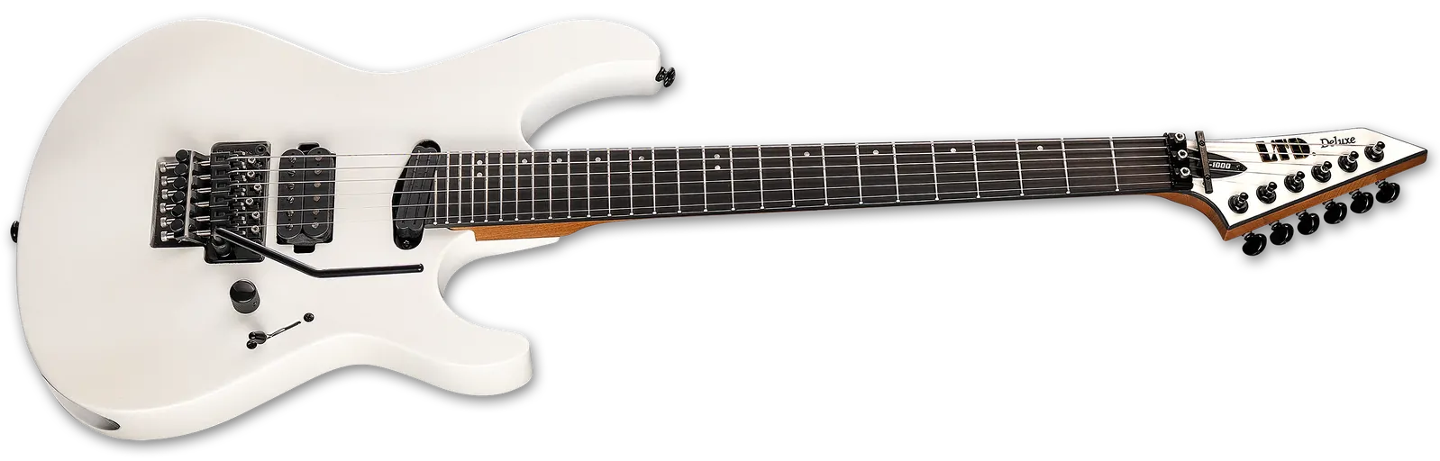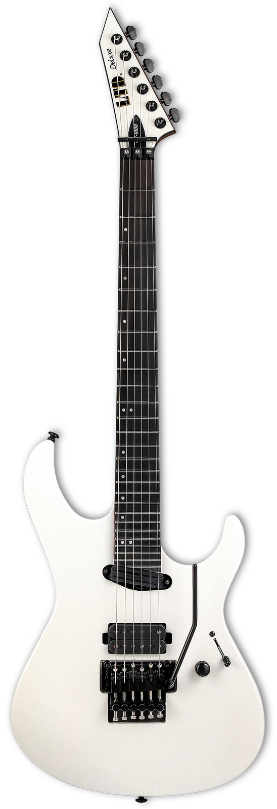The LTD Deluxe MV-1000 marks the long-awaited addition of the ESP Maverick shape to the LTD Series, and it comes in a design that’s perfect for professional guitar players who require the versatile tones, smooth playability, and complete reliability for serious recording and touring needs. The MV-1000 offers smooth, flowing curves and a slightly asymmetrical shape that truly stands out from the crowd of typical guitars. It offers bolt-on construction at 24.75” scale, making it incredibly easy to do huge string bends and dive-bombs with the Floyd Rose 1000SE double-locking tremolo with stainless steel screws. Crafted with an alder body and a three-piece extra-thin U-shaped roasted maple neck with Macassar ebony fingerboard, reversed matching-finish headstock, and 27 extra-jumbo stainless steel frets, this guitar is ready to assist you in doing the most expressive lead guitar work in your life. Components on the MV-1000 include black hardware, Grover tuners, and a uniquely superb direct-mounted Seymour Duncan pickup set with an ESP-exclusive Custom 14 TB in the bridge position, with coil-splitting via push-pull control, and a Hot Rails in the neck.