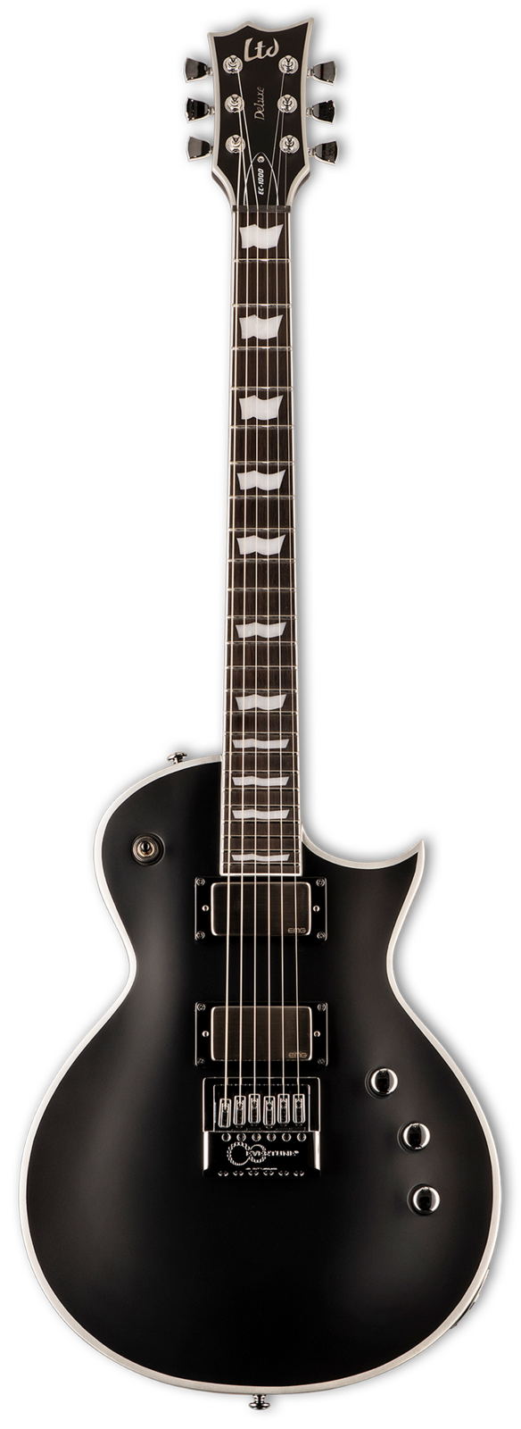 Guitars in the LTD Deluxe EC-1000 Series are designed to offer the tone, feel, looks, and quality that working professional musicians require in an instrument, while remaining affordable enough for serious players. With the EC-1000 EverTune BB, the “BB” stands for this guitar’s extra-thick metallic silver bold binding, which you’ll notice right away. But this guitar is more than great looking, with its set of EMG 60TW-R (neck) and EMG 81 (bridge) pickups, and a push-pull control to split the neck pickup. It offers 24 extra-jumbo stainless steel frets and the acclaimed EverTune constant tension bridge to keep your guitar in perfect tune at all points on the fingerboard under almost all circumstances.