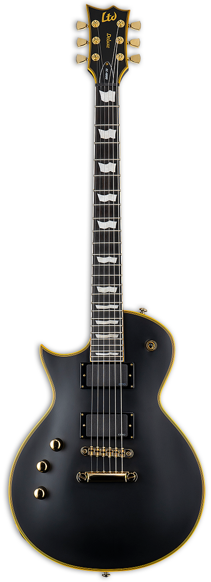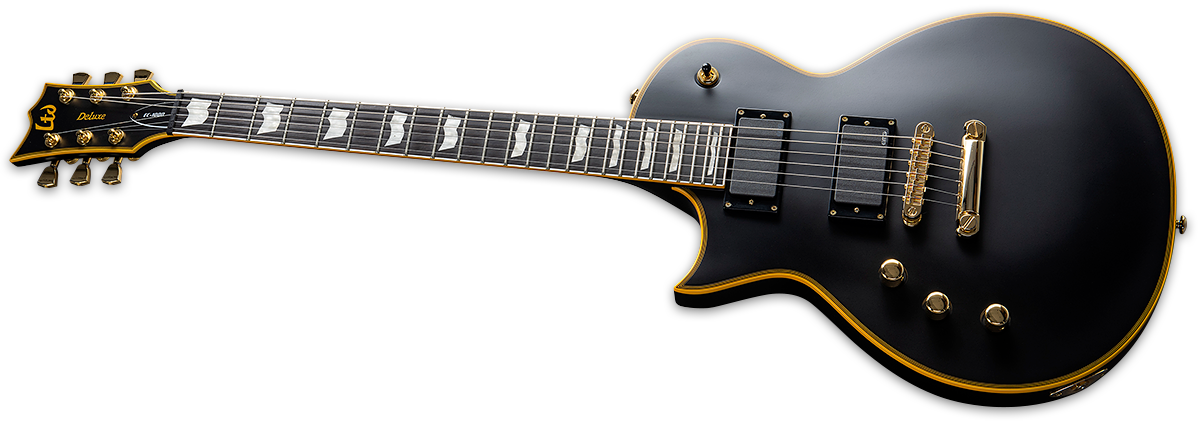 Guitars in the LTD EC-1000 Series are designed to offer the tone, feel, looks, and quality that working professional musicians need in an instrument, along with the pricing that typical musicians can still afford. The EC-1000 VB is consistently one of the most popular guitars due to its combination of incredible looks and great performance. It offers a vintage looking body/neck/headstock binding and gold hardware, and includes premier components like LTD locking tuners, a Tonepros locking TOM bridge and tailpiece, and the aggressive punch of active EMG 81/60 pickups. It also offers set-thru construction with a mahogany body, 3 pc. mahogany neck, and 24-fret Macassar ebony fingerboard. Available in Vintage Black finish