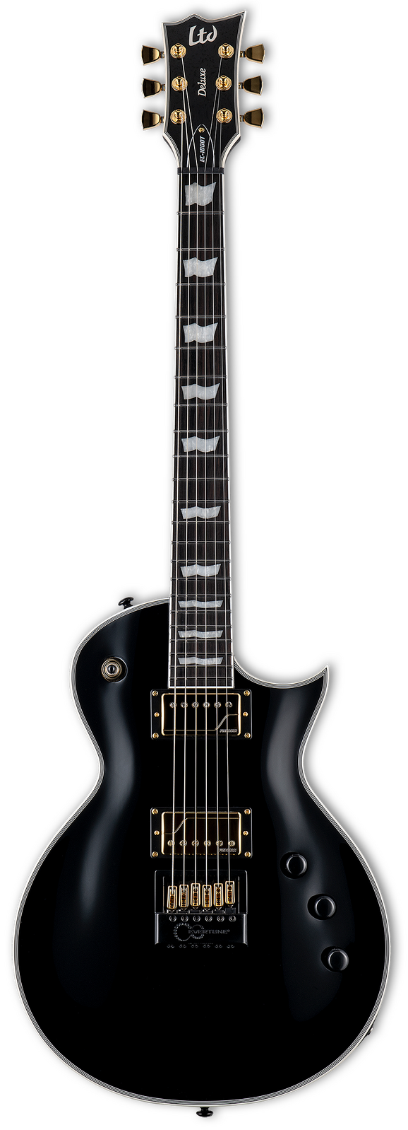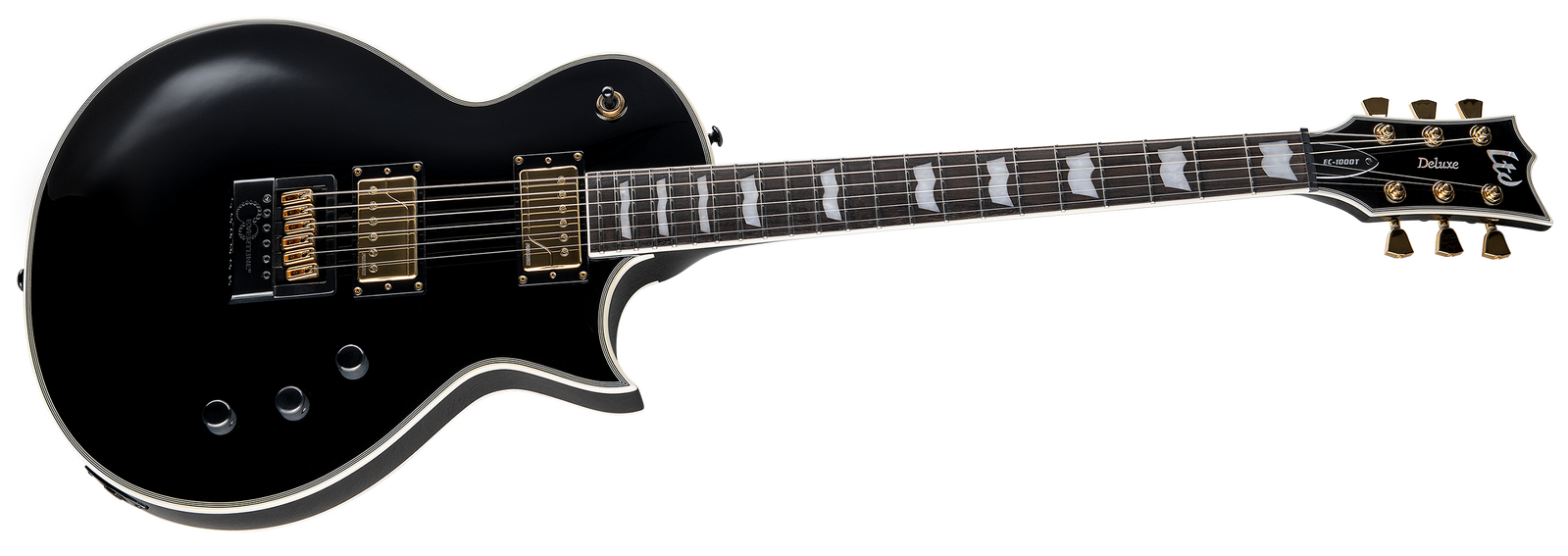 Guitars in the LTD 1000 Series are designed to offer the tone, feel, looks, and quality that working professional musicians need in an instrument. You can break down the EC-1000T CTM EverTune as follows: the “T” is for its traditional full-thickness classic single-cutaway mahogany body shape, with no waist cut. The “CTM” is for its custom multi-ply binding, situated on both the front and back or the body as well as neck and headstock. The EverTune is its innovative constant tension bridge system that keeps your guitar in perfect tuning, and perfect intonation up and down the fingerboard, in nearly any conceivable environment. The aesthetic design of this tough-looking guitar is detailed all the way down to the matching gold saddles of the EverTune, the black thumbwheels on its LTD locking tuners, and the black pickup rings on its set of Fishman Fluence Classic Humbucker pickups. These pickups, with voicings you can select with push-pull controls, offer everything from vintage PAF tones through airy chimes through classic hot-rodded humbucker tones. Other features of the EC-1000T/CTM EverTune include 22 extra-jumbo stainless steel frets on a Macassar ebony fingerboard with white pearloid ESP flag inlays.
