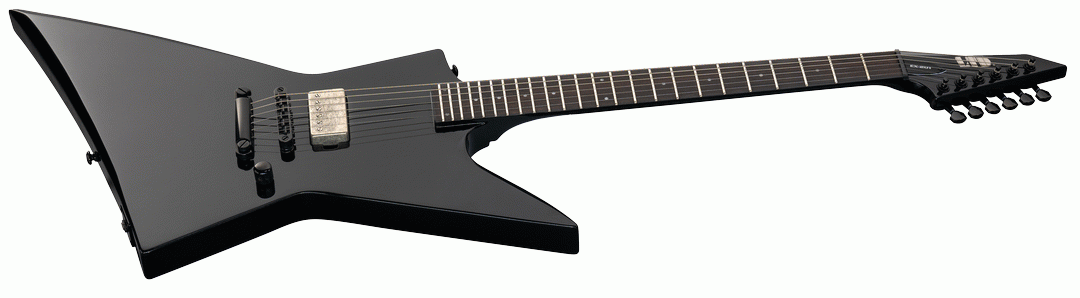 The LTD EX-201 in a bold gloss Black finish is built for players who seek aggressive looks and powerful performance. It features multi-ply binding on the mahogany body and headstock, complemented by black binding on the rosewood fingerboard, giving it a sharp and sophisticated aesthetic.