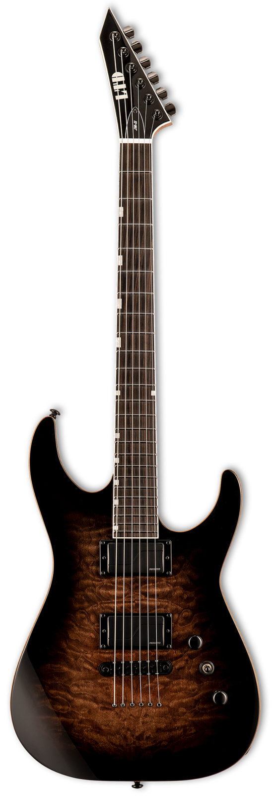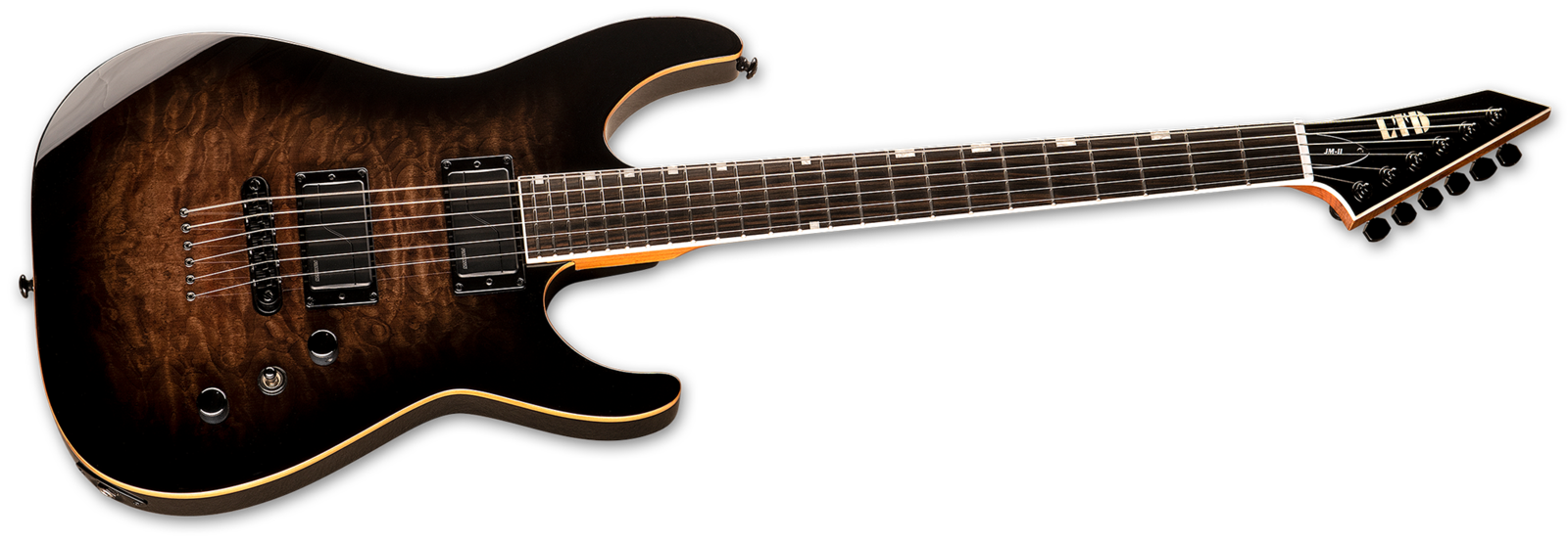 Josh Middleton is the acclaimed and highly influential guitarist of UK-based progressive metal/metalcore bands Sylosis and Architects, and his first ESP Signature Series guitar is one that lives up to this musician’s extraordinary talent. The LTD Josh Middleton Signature Series JM-II offers a bolt-on construction alder body with quilted maple top, a three-piece roasted maple neck in an extra-thin u-shaped profile, and a Macassar ebony fingerboard with 24 extra-jumbo stainless steel frets. Components on the JM-II include a set of Fishman Fluence Modern Humbucker pickups (alnico in the neck and ceramic in the bridge), with push-pull control to select voicings. It also offers LTD locking tuners and a recessed Gotoh TOM bridge with string-thru-body design. Available in Black Shadow Burst finish.