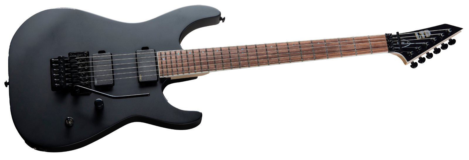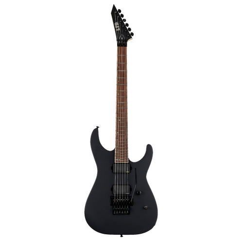 The LTD 400 Series is designed with the professional performing and recording musician in mind but is available at a price that even casual players can afford. With the M-400, you get a sturdily well-built bolt-on shredding machine, complete with the classic M-style extra thin flat neck profile. Available in this great-looking Black Satin finish, as well as a mahogany-topped passive-pickup version with the M-400M, its mahogany body and fast three-piece maple neck are constructed at 25.5" scale, with 24 extra-jumbo frets on its macassar ebony fingerboard. Like the rest of the M Series, simplicity is the key to the M-400, with a single volume knob and a selector to choose between its world-standard active EMG 85/EMG 81 pickup set. The M-400M also includes Grover tuners and a Floyd Rose bridge.