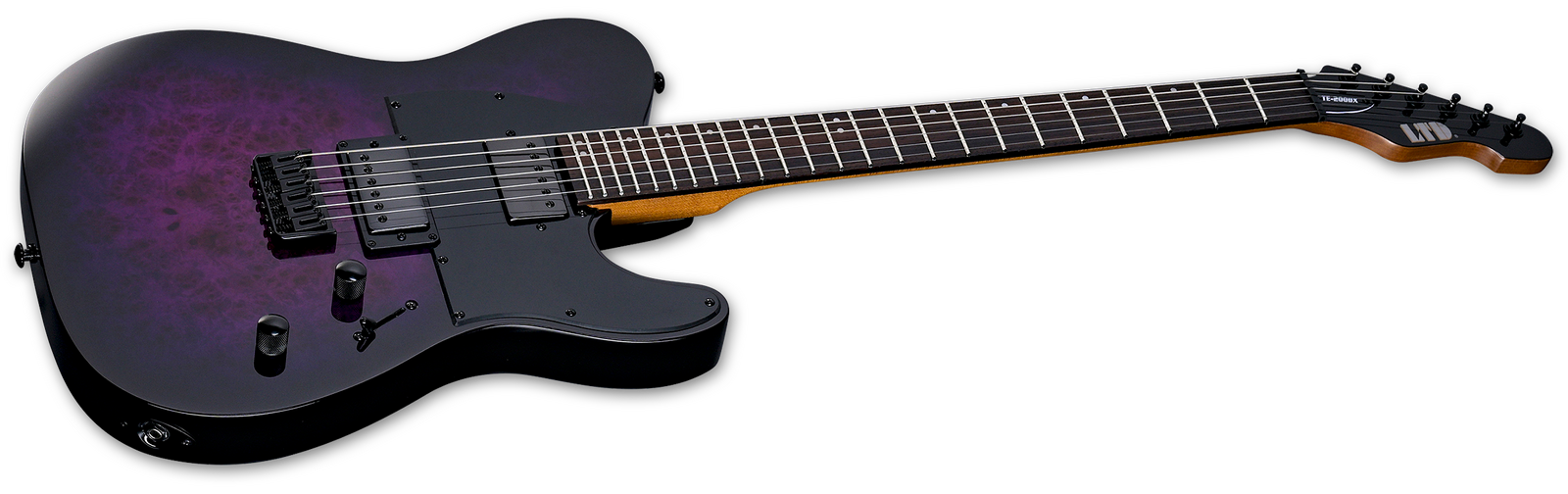 LTD’s DX range allows for musicians to get access to a high-quality guitar at a price far less than its impressive features would imply. The TE-200DX is an excellent and very affordable option for getting the classic LTD TE shape with features for contemporary guitarists. These include a lightweight and comfortable poplar body with an elegant birdseye maple top, and a roasted maple neck with rosewood fingerboard, offset dot inlays, and 24 extra-jumbo frets. The TE-200DX also features a hardtail bridge, black chrome hardward, black body binding, and a tiltback headstock. The TE-200DX includes a set of our acclaimed ESP LH-150 humbucking pickups with matching black chrome covers in the bridge and neck positions, providing punchy, great tone for all genres of music. You also get the flexibility of single-coil tones controlled by a push-pull switch on the tone knob.