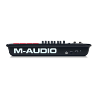 Note Repeat allows you to hold down any of the 8 custom-made M-Audio velocity-sensitive performance pads in 2 available pad banks to hear a repeated rhythmic pattern at a selectable note division. The Note Repeat feature can be activated momentarily or can be used in Latch mode. If you choose Momentary, holding the Note Repeat button will make the note played by the pad automatically repeat. If you choose Latch, pressing any pad will cause its assigned note to repeat without having to hold down the Note Repeat button.