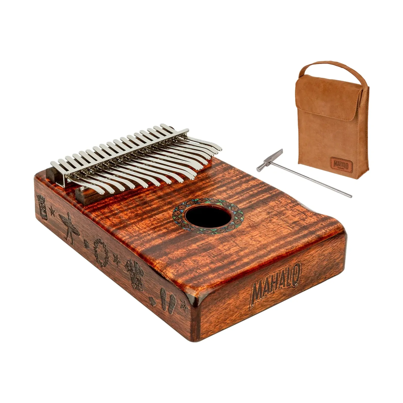 Handcrafted from solid Trembesib wood, the Mahalo 17 Note Kalimba offers a balanced and sustained acoustic sound. With 17 stainless steel tines in the key of C, easily create beautiful melodies with engraved notes and numbers for reference. Includes a tuning hammer, instructional booklet, and heavy duty carry bag for convenient and enjoyable playing.