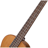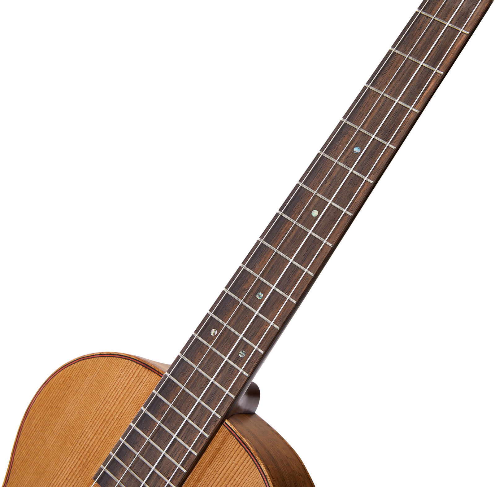 Serious players will appreciate the solid Red Cedar top, solid Mahogany body and the Amara Ebony fingerboard and bridge. With a natural matt finish and the subtle use of exquisite wood bindings and abalone inlays, the deep grained colors of these gorgeous woods are allowed to shine through — a visual delight for both you and your audience.
