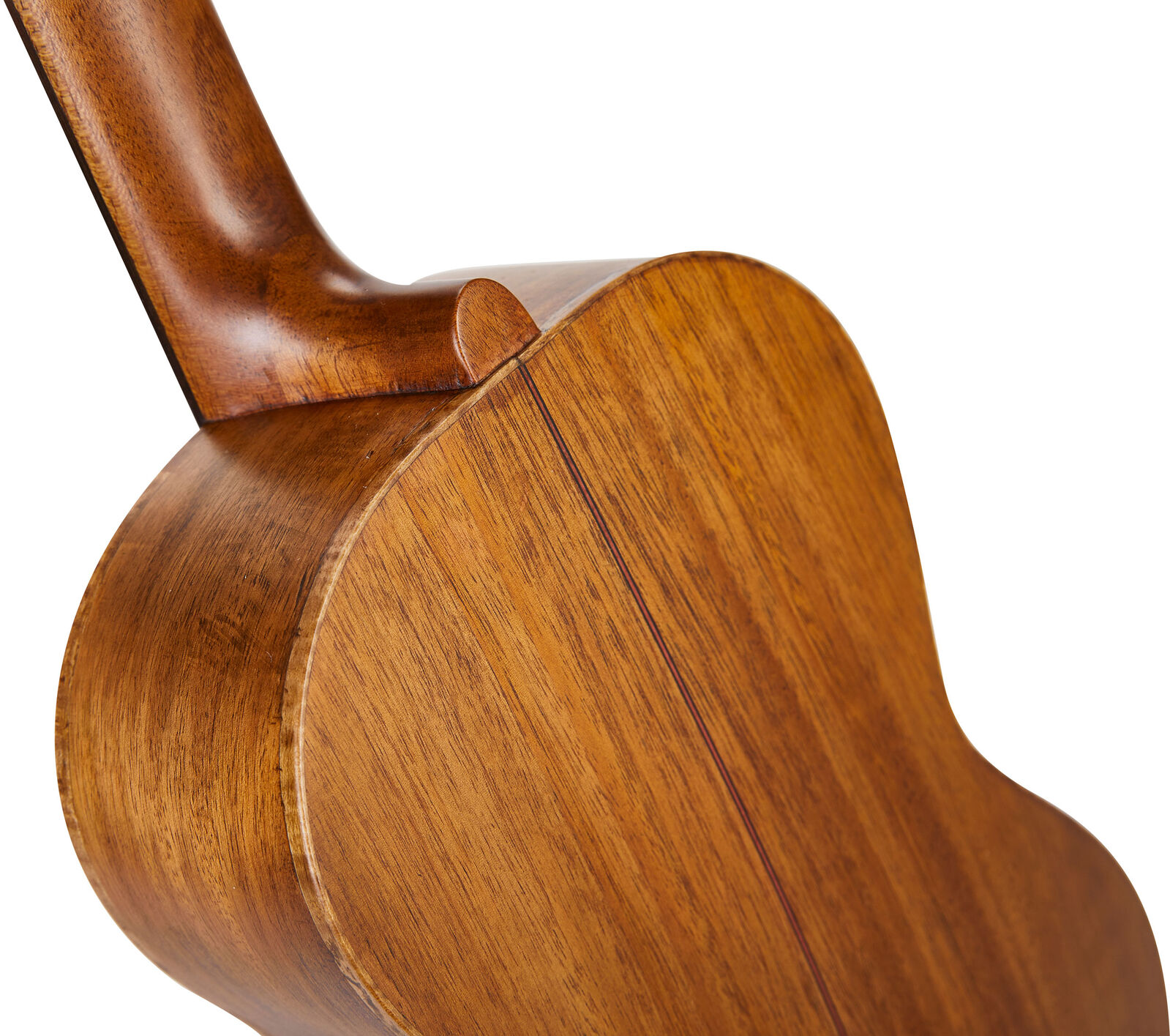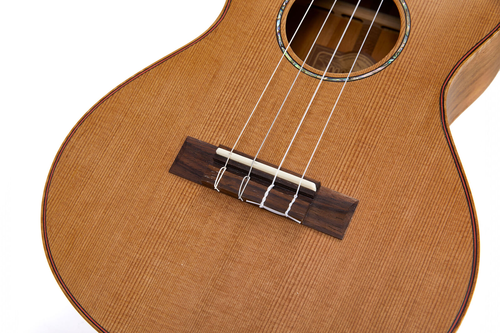 The use of real bone nuts and saddles, a one piece Mahogany neck and our unique ToneFlow bracing produces a gorgeous instrument with amazing resonance and durability. The incredible detailing of the Master Series, from the multi-layer wood binding to the ivoroid button tuners, makes this a ukulele you'll cherish for a lifetime.