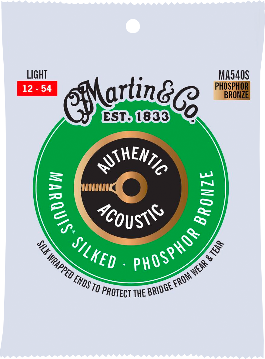 Martin® Authentic Acoustic® Marquis® Silked strings feature a soft silk wrap that prevents wear and tear on the bridge holes and bridge plate as you play. The added thickness also ensures that bridge pins will stay locked in place, even in older bridges with worn holes. Our impeccable standards for acoustic guitar tone are embedded in our string design and precision manufacturing process. That’s why we make our own.