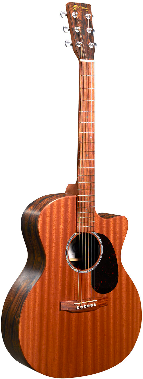 The remastered X Series is made to play. The acoustic-electric GPC-X2E features a hand-rubbed satin wood top and eye-catching high-pressure laminate (HPL) back and sides patterns—cocobolo with a spruce top or ziricote with a sapele top—for added durability and looks, without sacrificing that classic Martin sound. Playability enhancements include a thinner fingerboard with a gently beveled comfort edge and refined string spacing, and a modernized bridge contour for a smooth and comfortable playing experience, while its Grand Performance body size provides a projective, balanced tone with added bass, and a cutaway helps you reach the highest frets. The GPC-X2E also features an elegant abalone pattern rosette, select hardwood neck, fingerboard, and bridge, and Martin E-1 electronics with a built-in chromatic tuner and volume, tone, and phase controls, letting you plug in and play at any volume. All X Series models come with a softshell case.