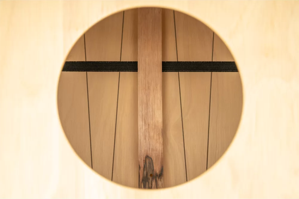 Thanks to the four silicone feet, there’s no unintended vibration but protection on all surfaces. It includes two hex screws to adjust string tension.