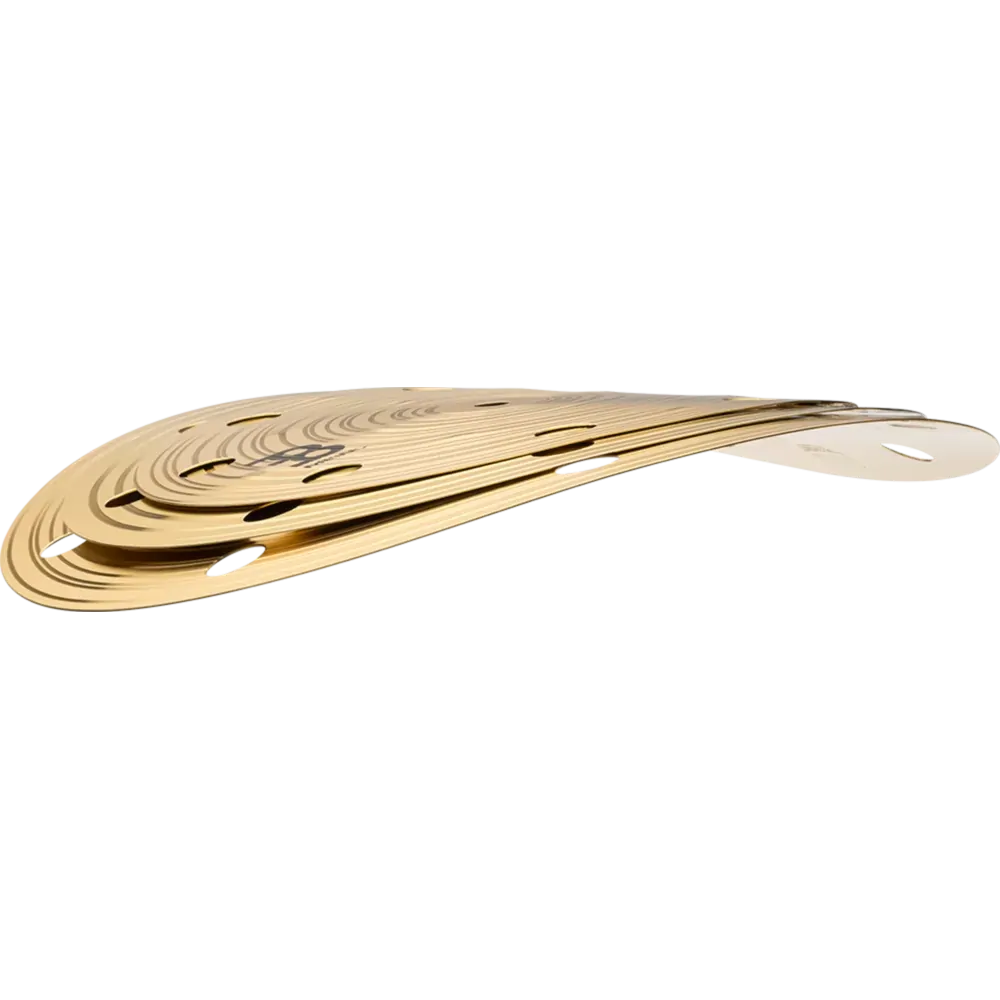 The 3-piece HCS 10/12/14 Smack Stack features three discs shaped to create a distinctive sound effect. The stack can be manipulated by adjusting the tension of the cymbal stand’s wing nut. Increased tension produces a crisp attack and short decay ideal for quick accents, while loose settings yield a longer sustain. Works well when paired with a snare drum for enhanced back beats, or as an alternative to your snare altogether. The discs are sized 10”, 12”, and 14”.