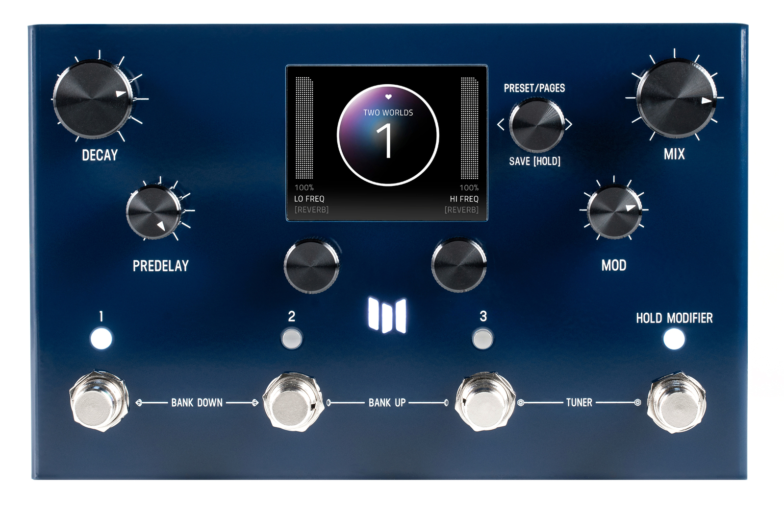 MercuryX combines 8 custom Meris reverb algorithms and incorporates those into a modular system UI/architecture that we first introduced with the award winning LVX pedal. Ultraplate and Cathedra are from Mercury7 and are inspired by the moody sci-fi reverbs featured in Blade Runner. The 78 Room, Plate and Hall structures are inspired by the venerable sounds of a studio classic. Spring, Prism, and Gravity are brand new structures unique to MercuryX.