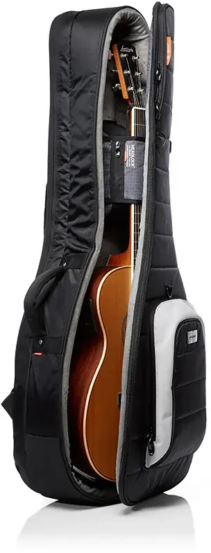 Now it is finally possible to carry one solid body electric and one acoustic dreadnought guitar at the same time, both fully protected with MONO’s patented Headlock® neck suspension system. The acoustic side will also accommodate most archtops and semi-hollows. The first of its kind. Go play.