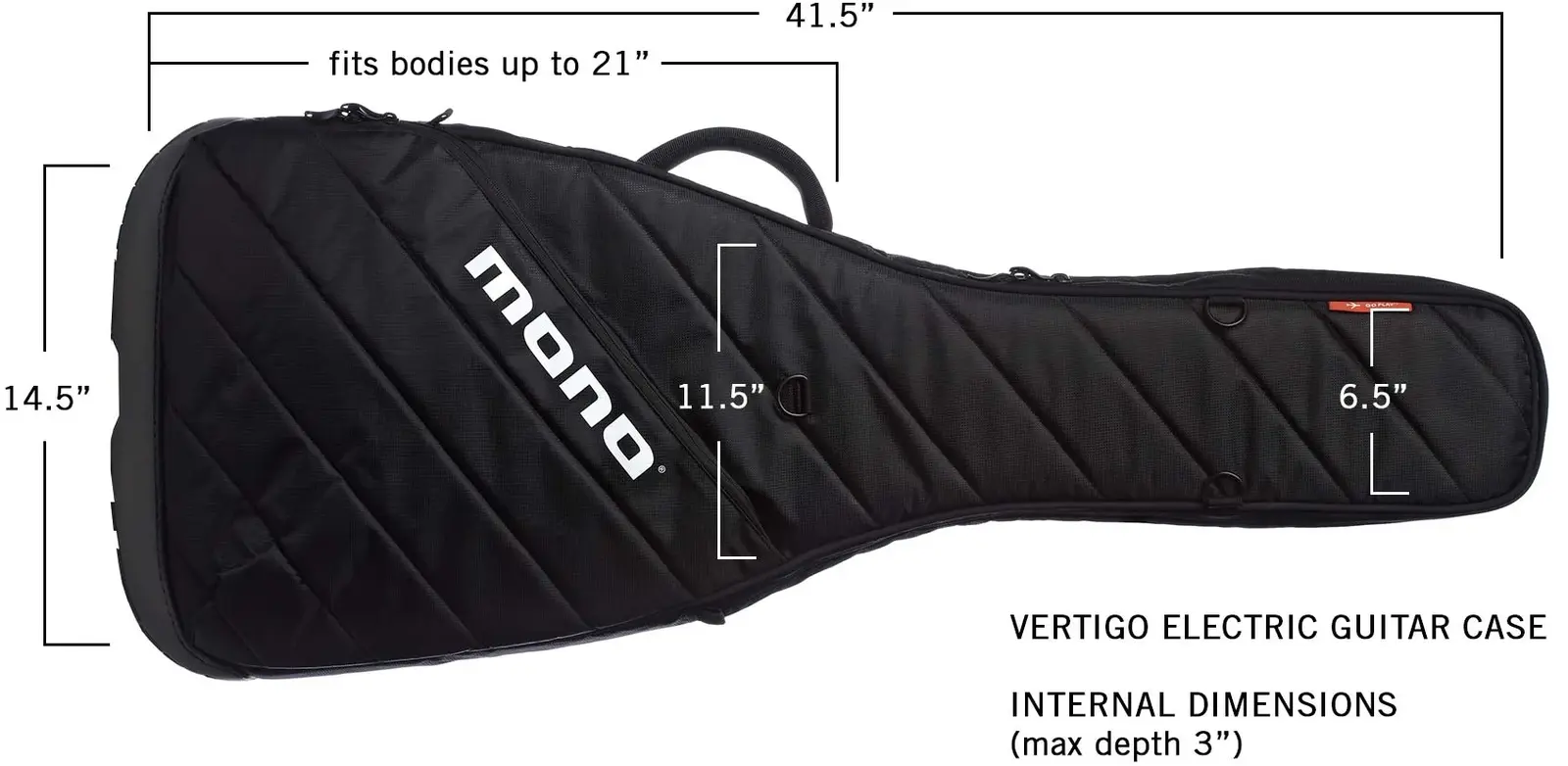 Integral ABS panels deliver hardcase protection at a fraction of the weight. (MONO cases weigh in at about 75% less than their hardcase counterparts.) The reinforced outer shell of the Vertigo™ absorbs and deflects hard impact away from the vulnerable areas of the guitar.