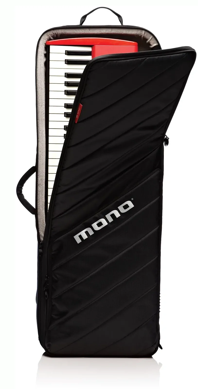 For keyboardists on the go, size and weight are key considerations. We applied our M80 Hybrid case design to create an incredibly light yet rigid case for 61 key controllers. An innovative dual hinge design allows for either Top-Loading® quick access or traditional horizontal opening. Rugged construction with a water resistant Sharkskin™ outer shell stands up to abusive travel. Keep a low profile with the deep front accessory pocket. Go Play®.
