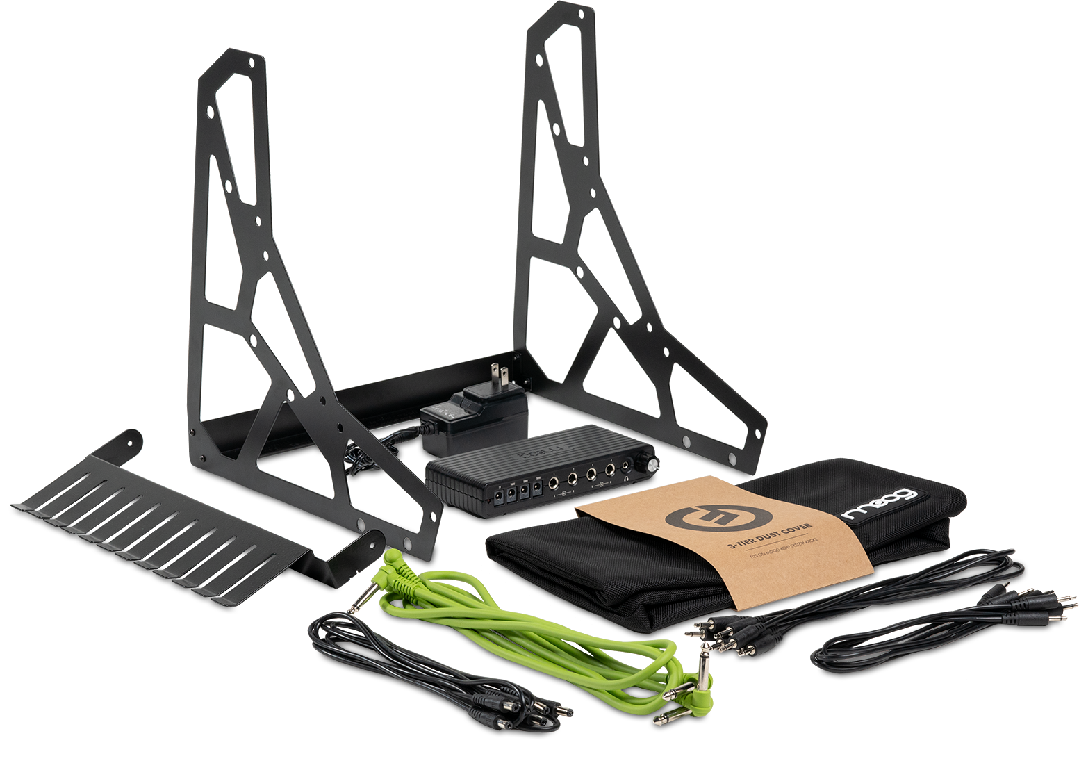 This four-input analog summing mixer features selectable mono or stereo configurations for versatile routing options, and the built-in three-way power distribution hub supplies power for up to three 60HP instruments conveniently from a single source. The included instrument cables come in lengths and colors to complement the system and reduce clutter. The 1/8” output with a built-in level control allows you to connect headphones, an audio interface, or monitor speakers.