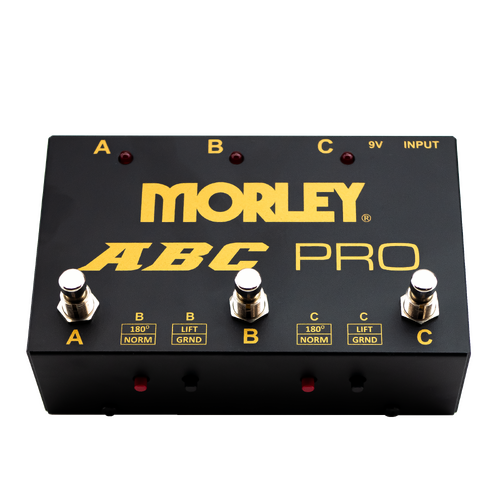 Are switching boxes giving you a headache? Our ABC Pro Selector is just what the doctor ordered! Based off the original Morley ABC Switcher our Pro version is equipped with new features that will help solve issues commonly faced when using switching devices for multiple amps. New features include a higher enclosure for easy access, a custom built Morley 1:1 isolation transformer, silent switching, a reverse polarity switch and a ground lift switch.