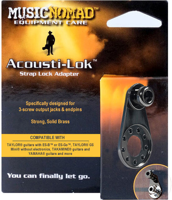 You can finally let go! Music Nomad's patent pending Acousti-Lok is a strap lock adapter that adds the safety & flexibility of using strap locks to your acoustic guitar without permanently modifying it.