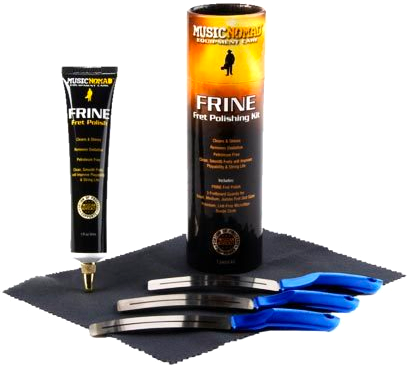 Music Nomad’s FRINE Fret Polishing Kit contains everything you need to give your frets an eye glaring, clean shine. The specially formulated FRINE Fret Polish has micro-fine polishing compounds that safely & quickly remove oxidation, dirt & oil.