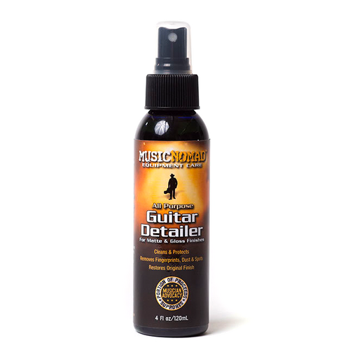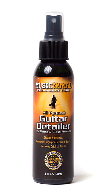 Nothing plays like a clean guitar. Music Nomad's detailer puts everything you need to care for your guitar in one easy spray and wipe product. A single spritz from our atomizer cleans fingerprints, dust & smudges on your guitar finish like no other product.