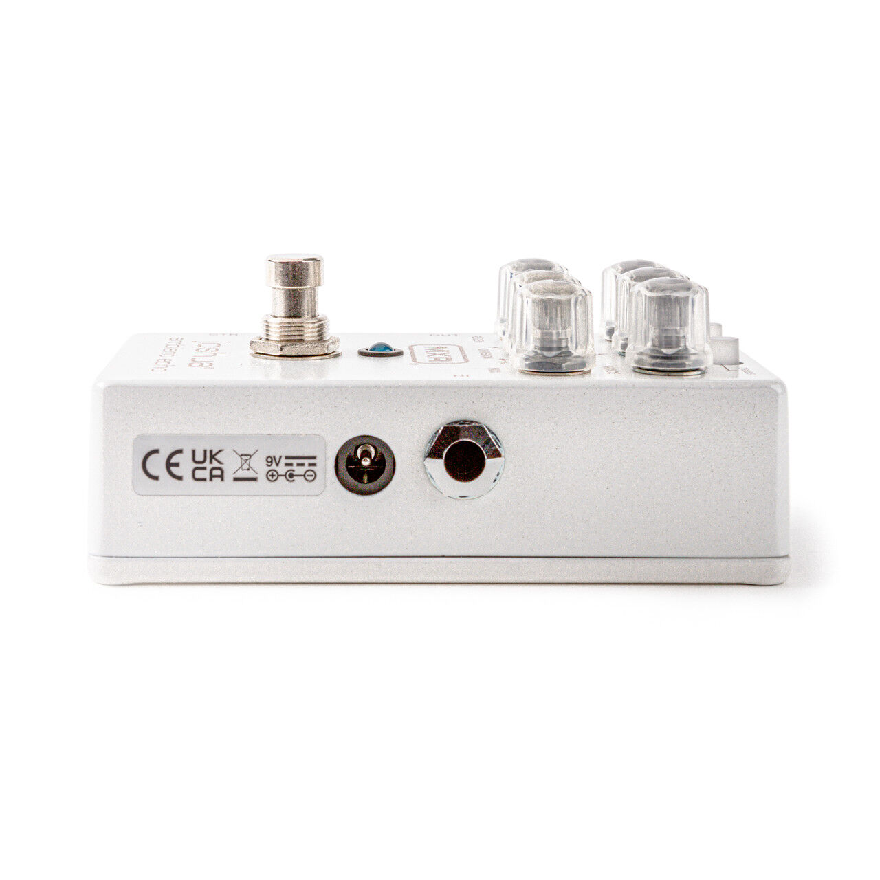 With the MXR Joshua Ambient Echo, refining the tones and textures of your echoes is effortlessly intuitive. The Mod control washes your delay signal with lush, chewy modulation. Once that’s dialed in, elevate the entire soundscape to celestial heights with the Voice control. It conjures an angelic, organ-like aura through a custom mix of -1 sub octave, +1 octave up, and +2 octave up signals, amplifying the ethereal ambience already crafted by the pedal’s other elements for a truly otherworldly sonic experience.