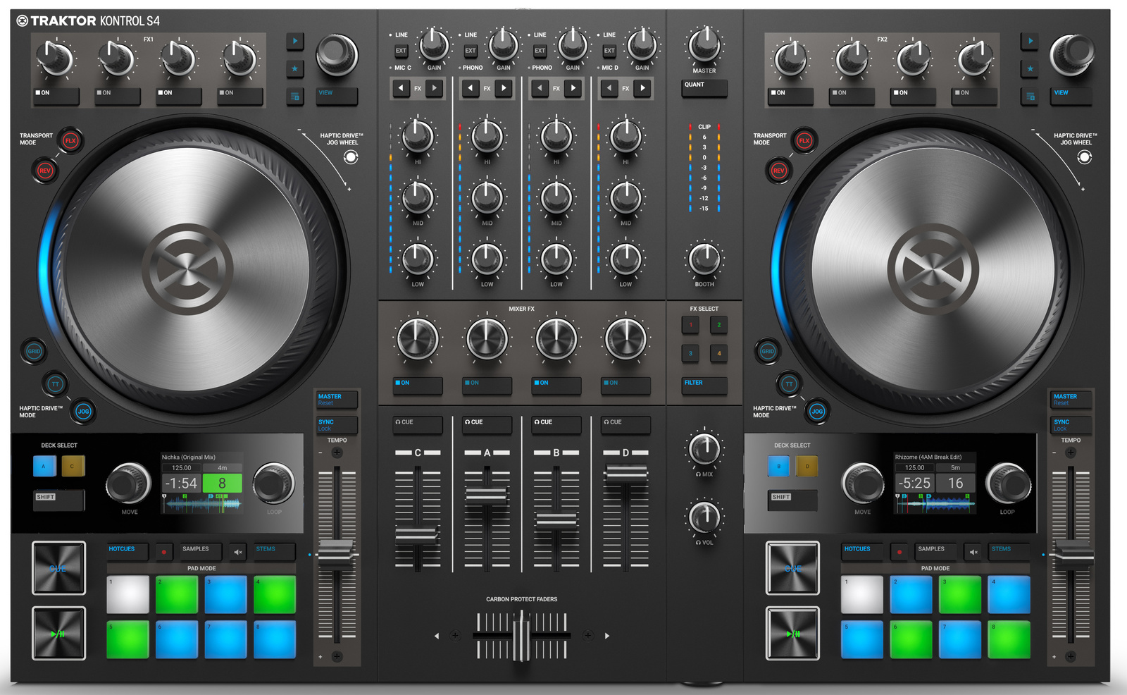 Imagine a DJ controller that lets you feel your mix: The S4’s brand-new Haptic Drive™ motorized jog wheels zap cue points, loop markers, and more direct to your fingertips. And that’s just the beginning.