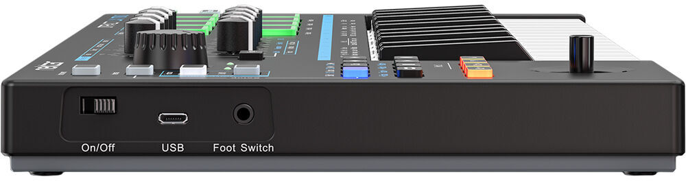 8 velocity-sensitive LED Pads (4 pad maps)