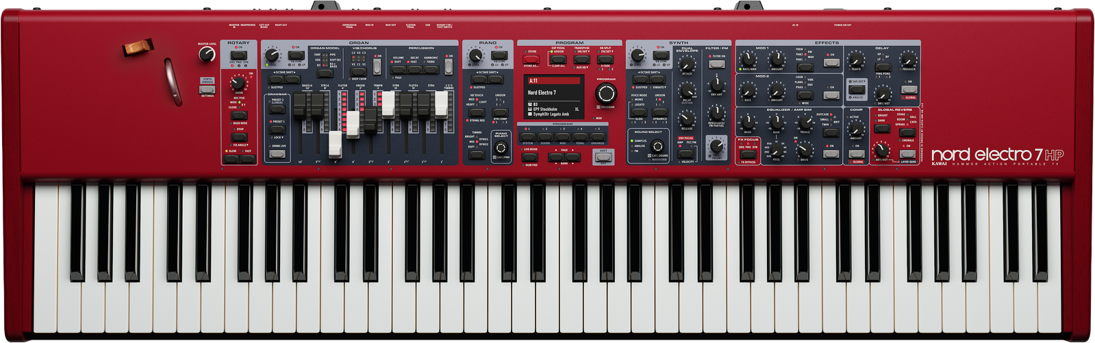 The Nord Electro 7 elevates the Electro series with a powerful new Synth Section, dedicated per-section effects and a refined panel design with a high-resolution color display. Combining our latest piano features with the Organ and Rotary Speaker from the acclaimed Nord Organ 3, the Nord Electro 7 offers exceptional versatility in a lightweight, stage-ready instrument.