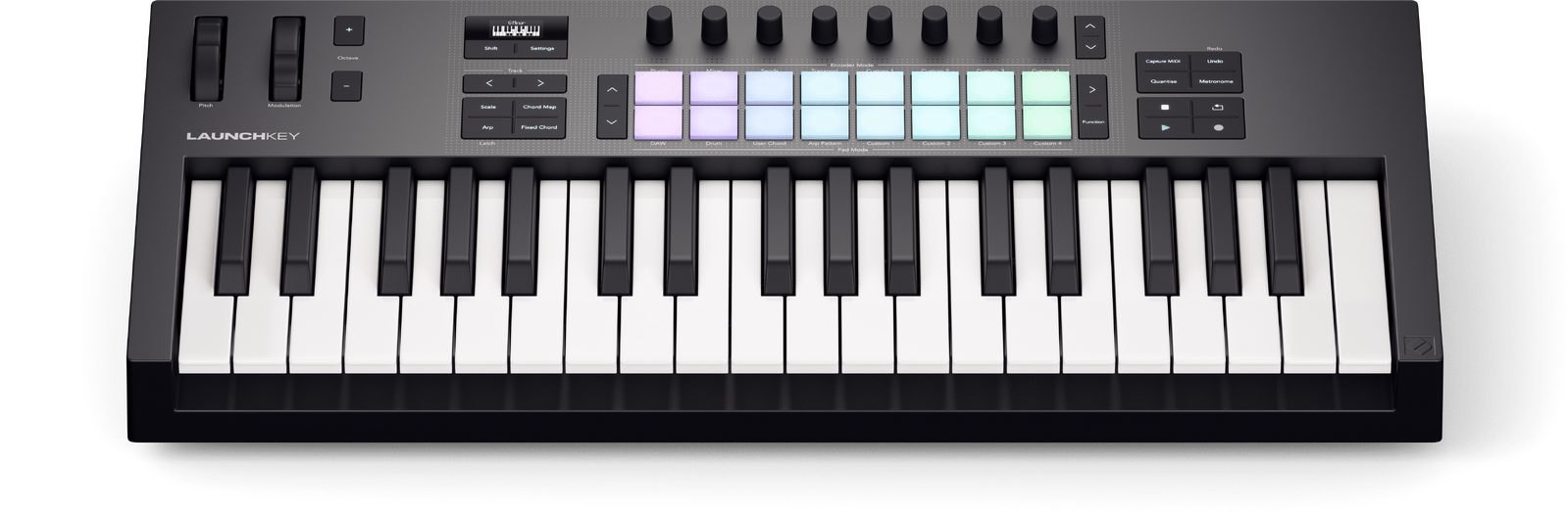The 37-note synth-style keyboard is expressive, musical, and a joy to play. For finger-drummers, Launchkey now sports our patented, velocity-sensitive FSR drum pads with polyphonic aftertouch. Unlike standard pads, each one features a unique, radial sensor that increases sensitivity and improves consistency for even tighter performances. They can also be set to trigger chords or individual notes with polyphonic aftertouch.