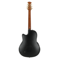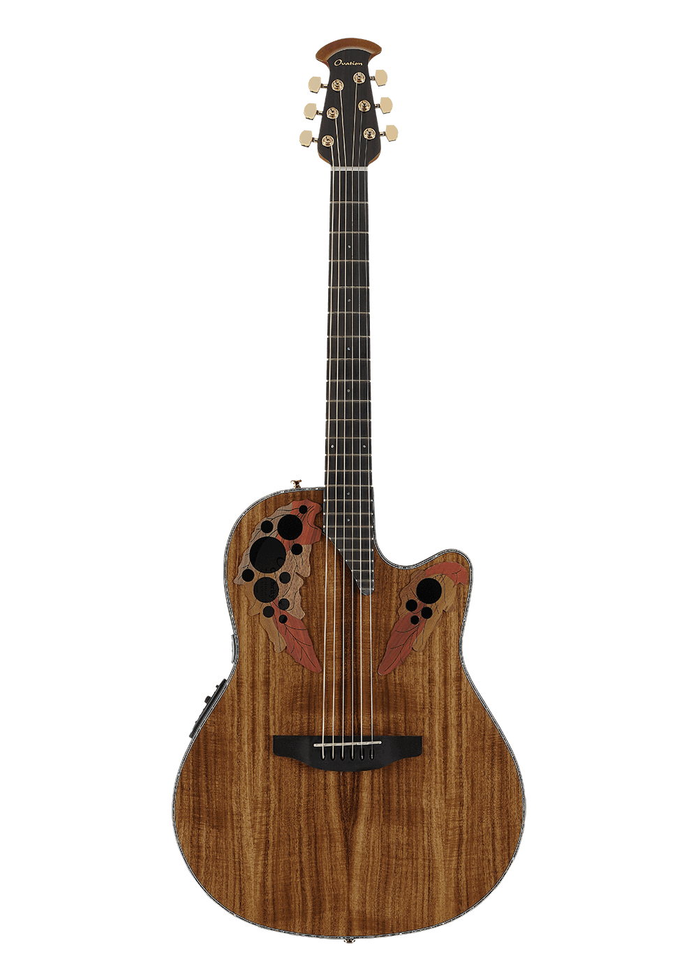 The Elite Plus Celebrity CE44P guitar series has the classic Mid Depth Lyrachord® cutaway body. The top features the Elite multi-soundhole design, which provides clear highs, focused, and balanced bass response. For the top’s quartersawn scalloped “X” bracing, we reviewed earlier Ovation bracing patterns extensively and arrived at a remarkable new design that borrows from the past and is voiced for the present. With natural tone and optimal response and power, the body, top and sound holes create the classic Ovation Elite sound, resonating with full projection, remarkable note clarity and balance, and nuanced tonal complexity.