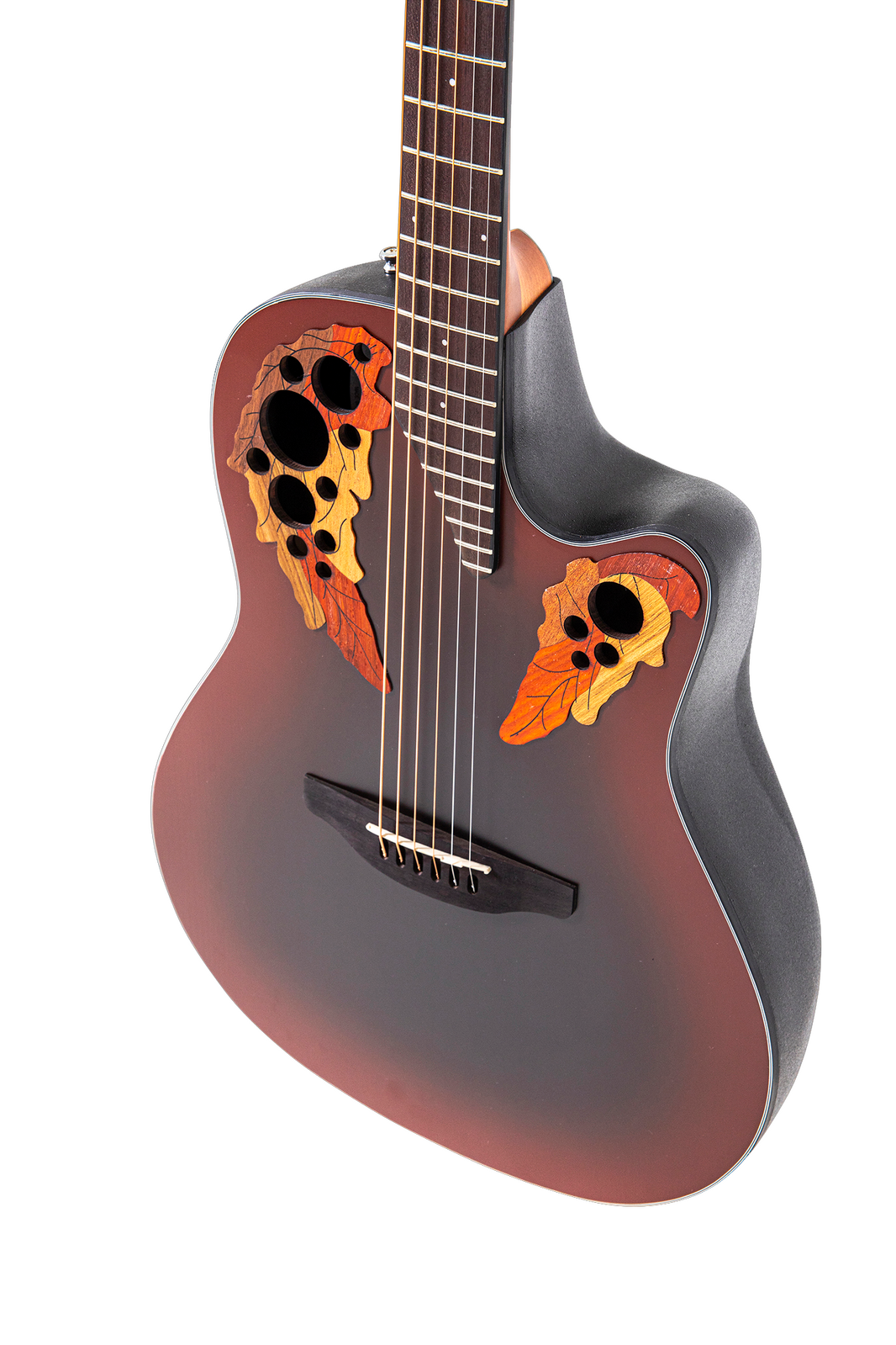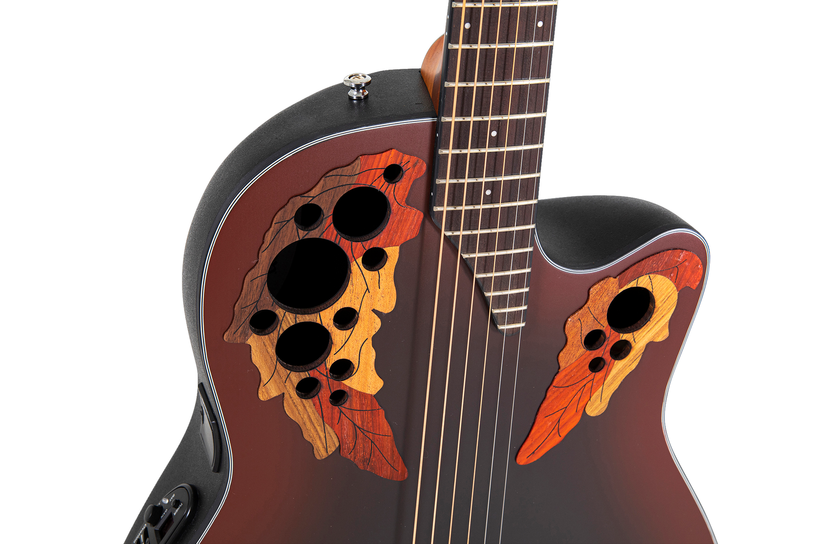 They feature Ovation's signature Multi Soundholes. This innovative construction uses several small openings at the edge of the guitar top instead of a single, central soundhole.