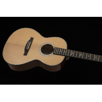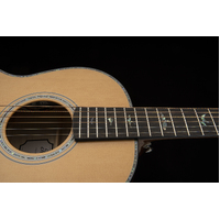 The PRS SE P50E is a parlor-sized acoustic with a big voice. Featuring a solid spruce top and figured maple back and sides, the PRS SE P50E brings a sophisticated new aesthetic to the popular parlor platform. This body size offers bold projection with more focused tone, and the maple back and sides provide unexpected warmth and tonal transparency. When matched with PRS hybrid “X”/Classical bracing, which allows the top to freely vibrate and project, the SE P50E has an uncommon 3-dimensional character for a maple back and side guitar. The Tonare Parlor body shape and shorter (24.72”) scale length make this guitar comfortable to play for hours on end.1750