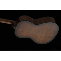 Additional high-quality features include Abalone purfling and bird inlays, ebony fretboard and bridge, and bone nut and saddle. Ships in a high-quality acoustic gig bag.