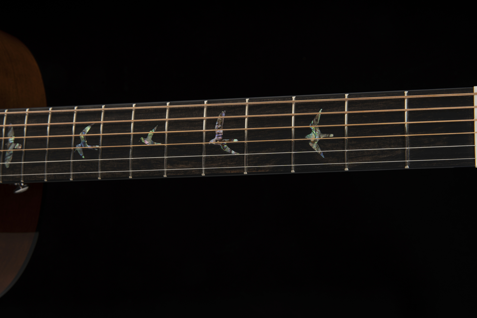 Plugged in, the PRS-Voiced Fishman Sonitone Pickup delivers dynamic, organic tone that allows the natural sound of the instrument to come through. “The EQ in this pickup system sounds like you mic’d the guitar. It’s very musical,” said Paul Reed Smith. This electronics system features an undersaddle pickup and soundhole mounted preamp with easy-to-access volume and tone controls.