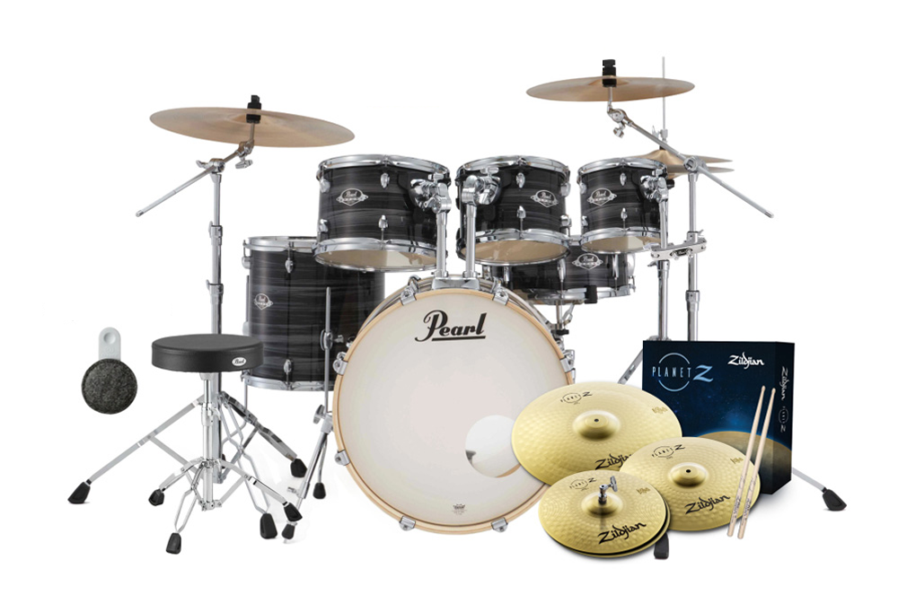 This promotional Export Plus Package is exclusive to Australian drummers for a limited time. Includes a 5-piece shell pack including matching snare drum, Pearl's sturdy 830 series hardware pack (snare stand, hi-hat stand, 2 boom cymbal stands, and P930 bass drum pedal), Pearl D-790 height-adjustable drum throne, and a Zildjian Planet Z Cymbal Pack (14"" hi-hats, 16"" crash and 20"" ride) - all the essential gear to fuel the fire for future drumming icons.