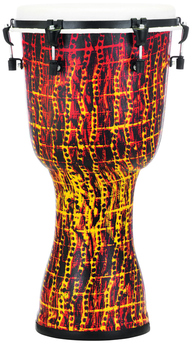 Djembes produce a wide range of sounds and are ideal as a solo instrument or as part of a large percussion ensemble or drum circle. Pearl’s Top Tune Djembe series includes four different size drums; 8”, 10”, 12” and 14” with the smaller drums delivering a higher pitch that cuts through and the larger sizes producing a thunderous low-end punch.The patented seamless synthetic shells are available in two dynamic finishes #696 Purple Haze and #697 Tribal Fire with simulated skin heads. Pearl’s top tuning mechanism simplifies the tuning process and makes changing heads a breeze.