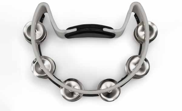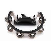 Pearl's professional Quickmount Tambourine features an inverted comfort grip handle that shifts the balance point of the tambourine for improved control. Six double rows of premium steel jingles create a bright metallic sound. The heavy-duty white frame includes a molded rubber top that cushions when striking with a drumstick. The comfort grip handle slides into the shock-absorbing Quickmount bracket to go from mounted to hand-held in seconds.