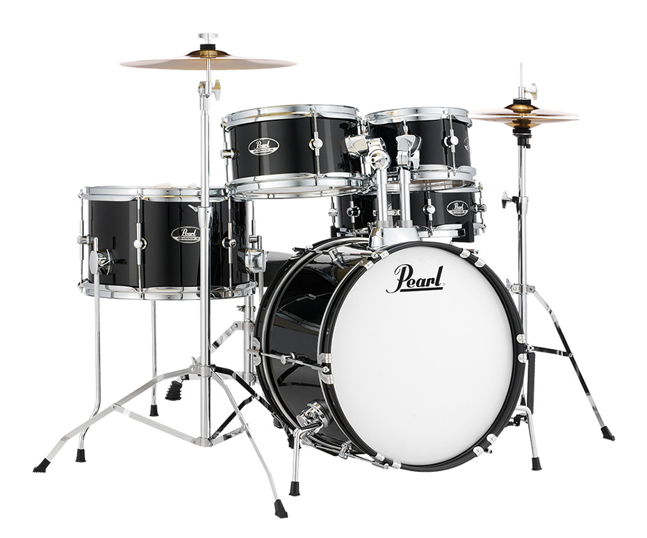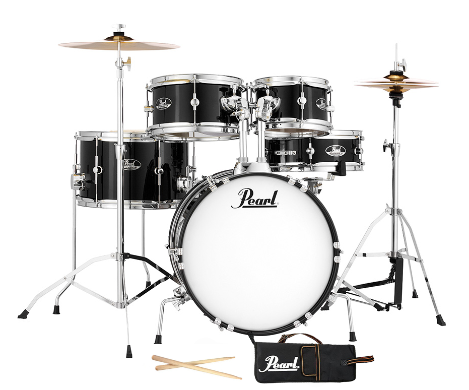 Pearl Roadshow Jr. 5-piece Drumkit with hardware, cymbals, drum throne, sticks and stick bag.