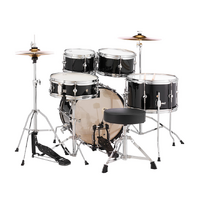 The Roadshow Jr. is an all-in-one five piece kit featuring hardware, cymbals, and sturdy White Poplar shell construction for an exceptional, tuneable, and powerful playing experience.