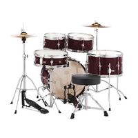 The Roadshow Jr. is an all-in-one five piece kit featuring hardware, cymbals, and sturdy White Poplar shell construction for an exceptional, tuneable, and powerful playing experience.