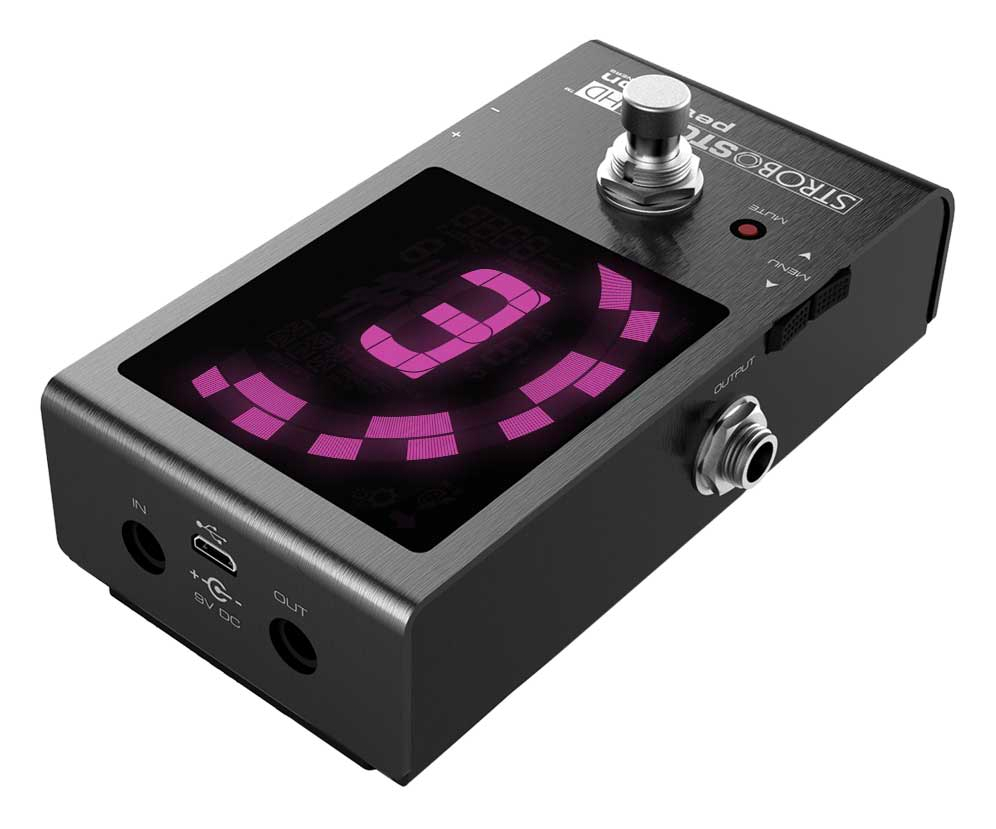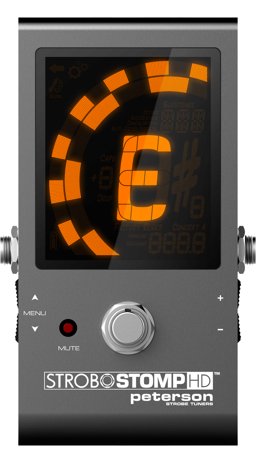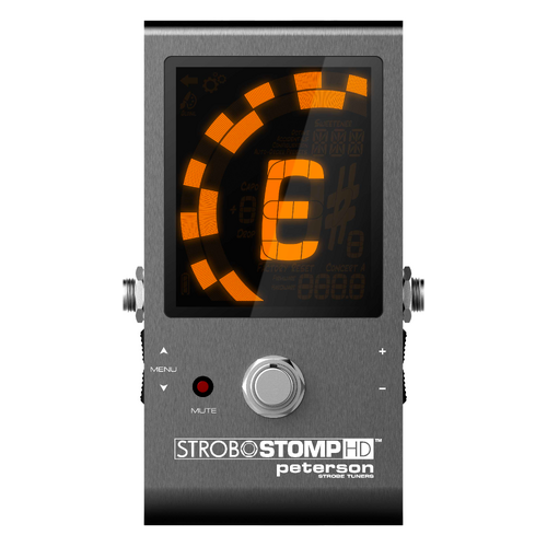 Featuring the largest tuning display Peterson Tuners has ever incorporated into one of their pedal tuners, the StroboStomp HD boasts a high-definition, LCD screen that incorporates a variable color LED backlight. The user-selectable colors can be used to personalize the tuner or to increase display viewing quality in different levels of ambient lighting depending on the usage environment. The vibrant screen colors can also be assigned to stock or user presets to significantly reduce menu navigation time and increase on-stage tuning confidence at the gig.