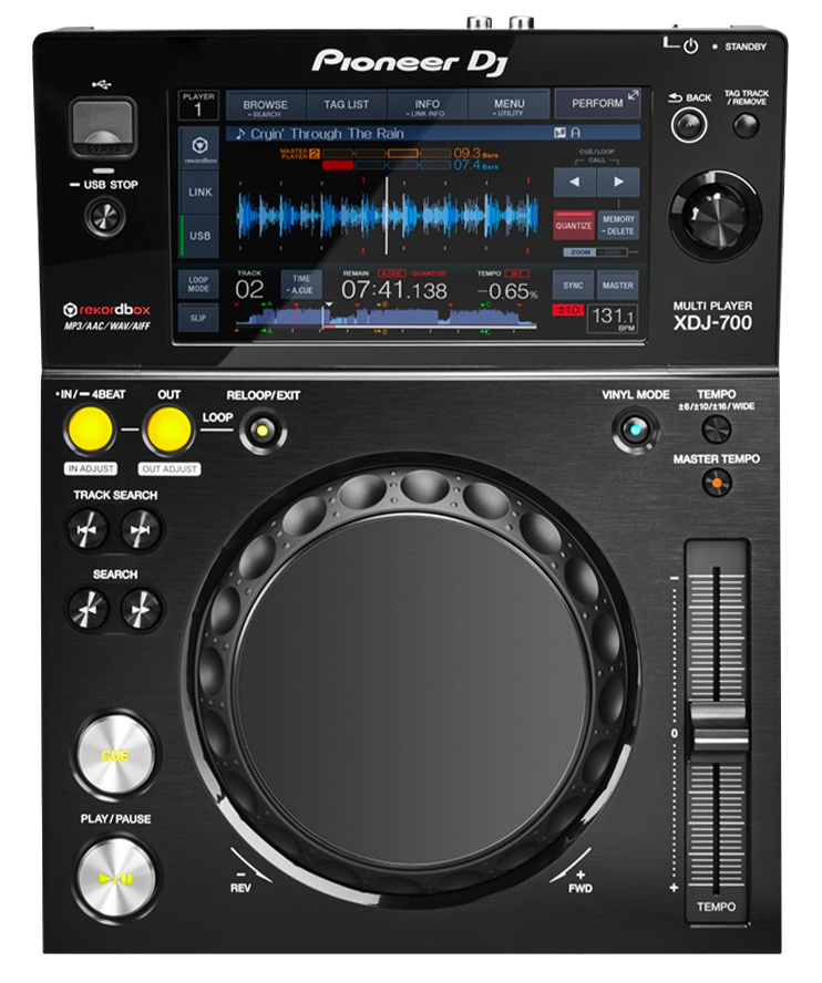 The XDJ-700 comes with a large touchscreen, a familiar club layout and it inherits a host of features from its big brother, the XDJ-1000. Its compact size and removable stand offer great set-up possibilities for even the smallest booth or home set-up.