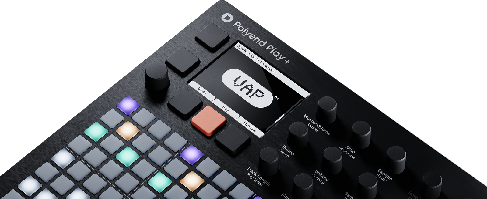 The original Play set the standard for instant playability. Play+ takes Polyend’s unique groovebox experience to new heights with an upgraded internal architecture, which enables a host of new features and enhancements while retaining the same sleek Play form factor. Immerse yourself in richer stereo sounds, delve into multitimbral polyphonic synthesis, and experience seamless audio over USB.