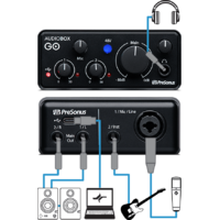 The AudioBox GO™ features a PreSonus® XMAX-L preamp, designed with over 25 years of recording-studio knowhow. Not only does it ensure that your recordings will sound clean and articulate with low noise, it also provides 50 dB of gain and +48v phantom power for professional XLR condenser microphones. The combo jack doubles as a line-level input that you can use to record keyboards, drum machines, and more! A dedicated Instrument input lets you connect an electric guitar or bass, so you can record guitar and vocals at the same time.