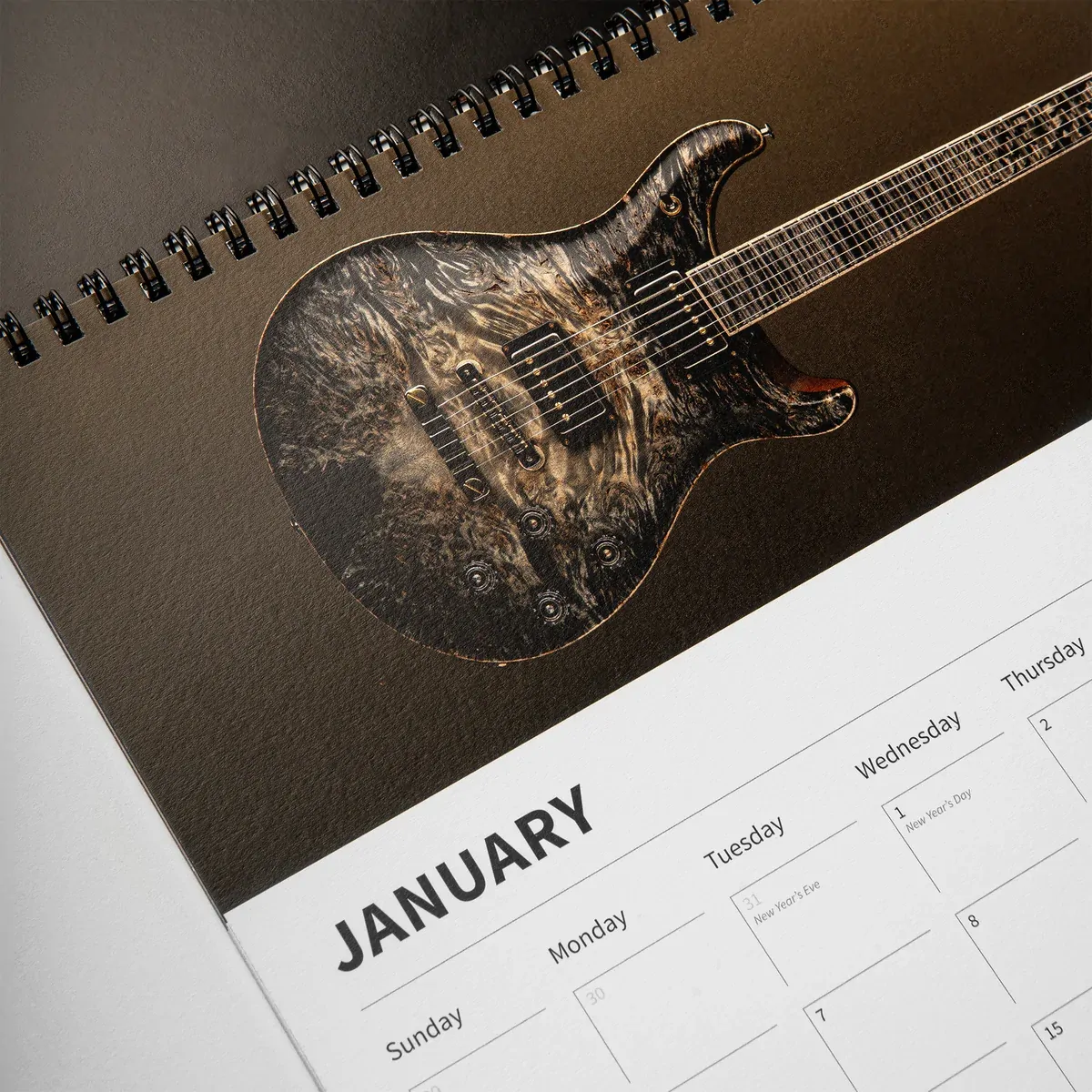 The PRS Private Stock calendar is a celebrated tradition that is released every year. Cherished by fans and the perfect gift for the guitar aficionado in your life, this 13-month calendar features an artistic photograph plus a full guitar image for every month.