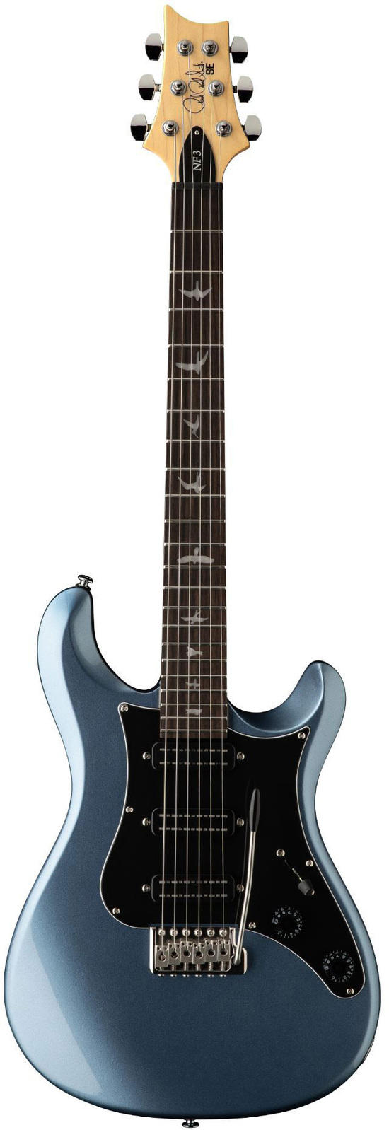 The PRS SE NF3 is a distinct guitar in the PRS lineup. The heart of this guitar is a trio of PRS Narrowfield pickups, a first for the SE Series. Supporting these pickups is a poplar body, 22-fret bolt-on maple neck, and a rosewood fretboard. The SE NF3 is a versatile workhorse guitar that is fun to play and hard to put down. The Narrowfield DD (Deep Dish) “S” pickups are made with taller bobbins to fit more winds and extra metal pieces in between the magnets for a more focused, powerful tone. Anchored with PRS’s patented tremolo, this guitar can bend and flutter with ease.